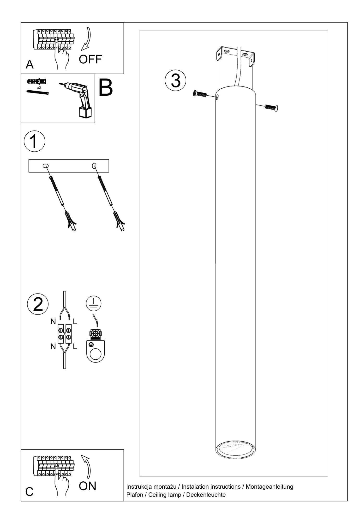 Deckenlampe Schwarz 60 cm hoch Ø 6 cm Zylinder GU10