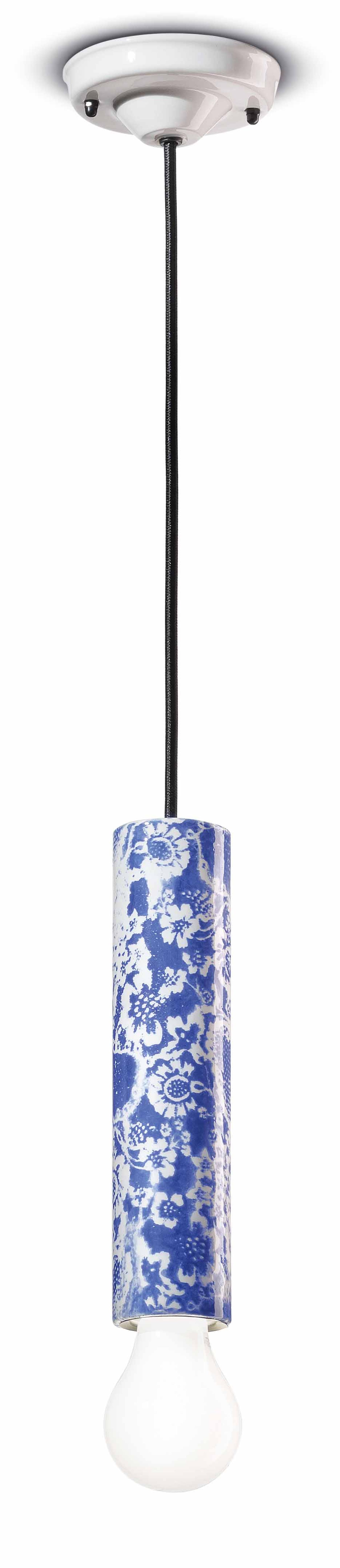 Hängelampe Keramik E27 D: 8 cm Blau Muster rund Retro