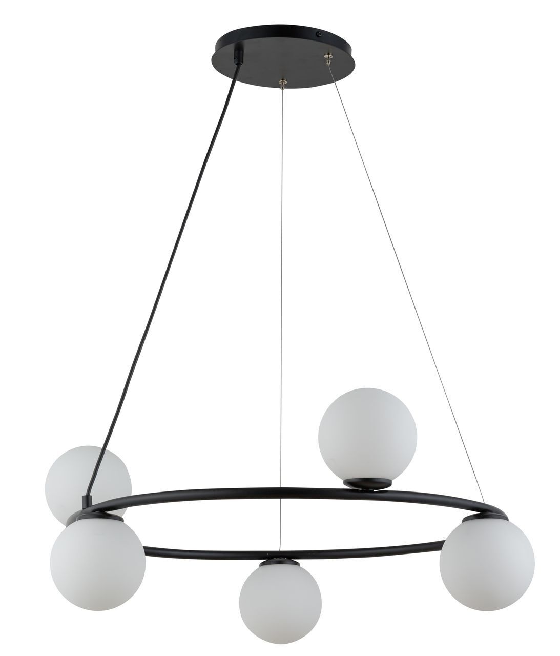 Der satinierte Kugelschirm streut das Licht blendarm, sodass eine wohnliche Atmosphäre entsteht